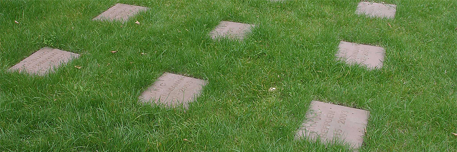 Bei Rasengräbern sind die jeweiligen Grabstellen durch einzelne Grabplatten oder auch Grabmale auf einer durchgehenden Rasenfläche namentlich gekennzeichnet. Grabpflege ist hier nicht nötig, nur der Rasen muss hin und wieder gemäht werden, was von der Friedhofsverwaltung erledigt wird.